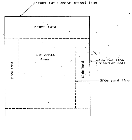 Yard, side. A yard between the main building and the side lot line, extending from the front lot line to the rear lot line.