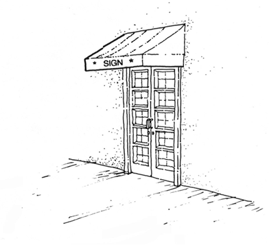 (a)   Awning, canopy and marquee signs: no projection above, below or beyond awning canopy or marquee area.