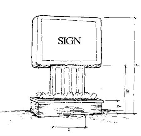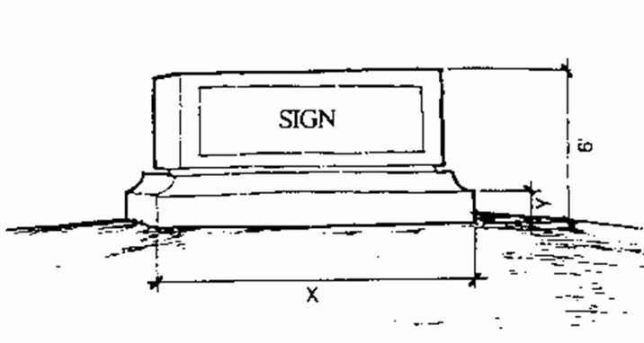 (3)   Monument Sign:  Any sign whose base is greater in width than the face of the sign, and whose height is no greater than 6 feet.