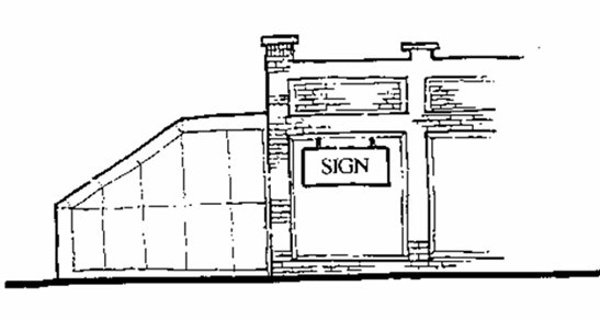 (7)   Projecting Sign:  A sign that is wholly or partly dependent upon a structure for support and which projects more than 12 inches from such structure.  No individual projecting sign shall exceed 12 square feet in area.  Projecting signs shall maintain a minimum clearance between the bottom of the sign and the nearest grade of sidewalk of eight feet.