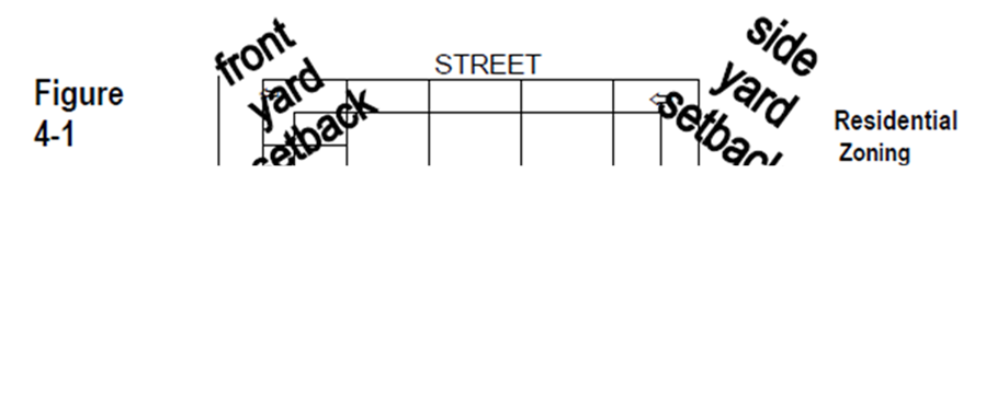 e.     Setbacks.  Setbacks refer to the unobstructed, unoccupied open space between the furthermost projection of a structure and the property line of the lot on which the structure is located, except as modified by the standards of this section.  Setbacks shall be unobstructed from the ground to the sky except as specified in this section.