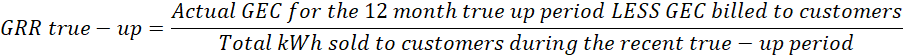 (b) The Generation Recovery Rider (GRR) shall be calculated as follows and billed as a separate line item on customer bills. Projected generation equipment costs (GEC) are based on all known factors such as loan payments and other fixed charges:
